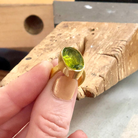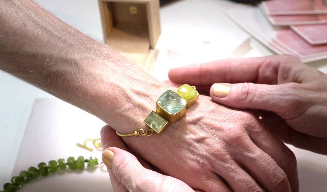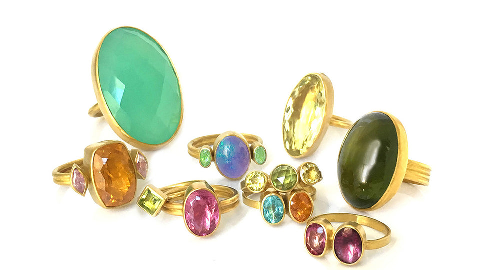 "My jewelry features rich 22k gold and vivid gemstones. Every piece is one of a kind, made one at a time entirely by me using the ancient craft of classical goldsmithing."